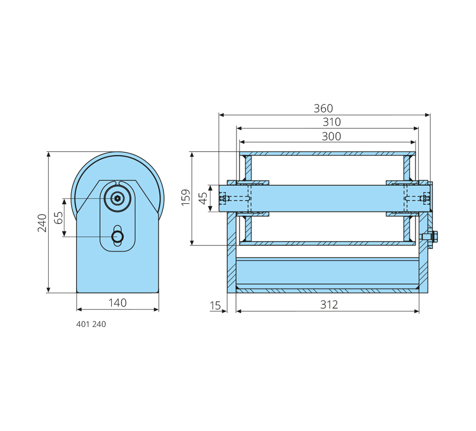 45-159-300/310mm, H=240mm, Achsschmierung, Messingbuchse