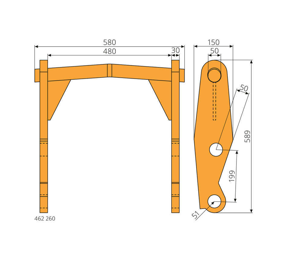 Axe de préhension rabatable50x580mm, S355J2+N, entraxe des trous 199mm, type HUSMANN