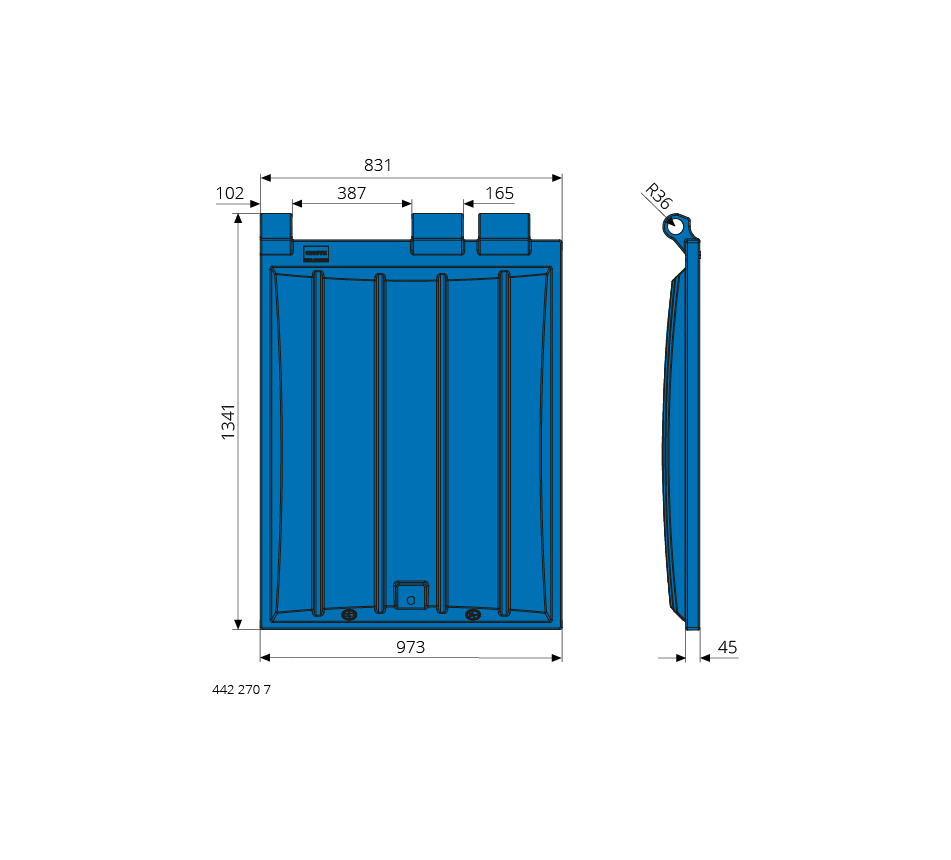 973x1341mm, plastique technique, bleu clair (similaire à RAL 5015)