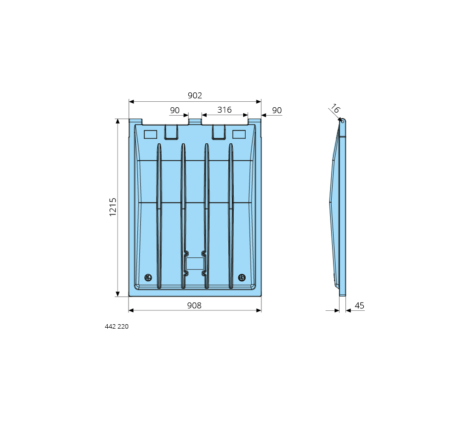 Couvercle REWALD FL3647908x1215mm, plastique technique, noir