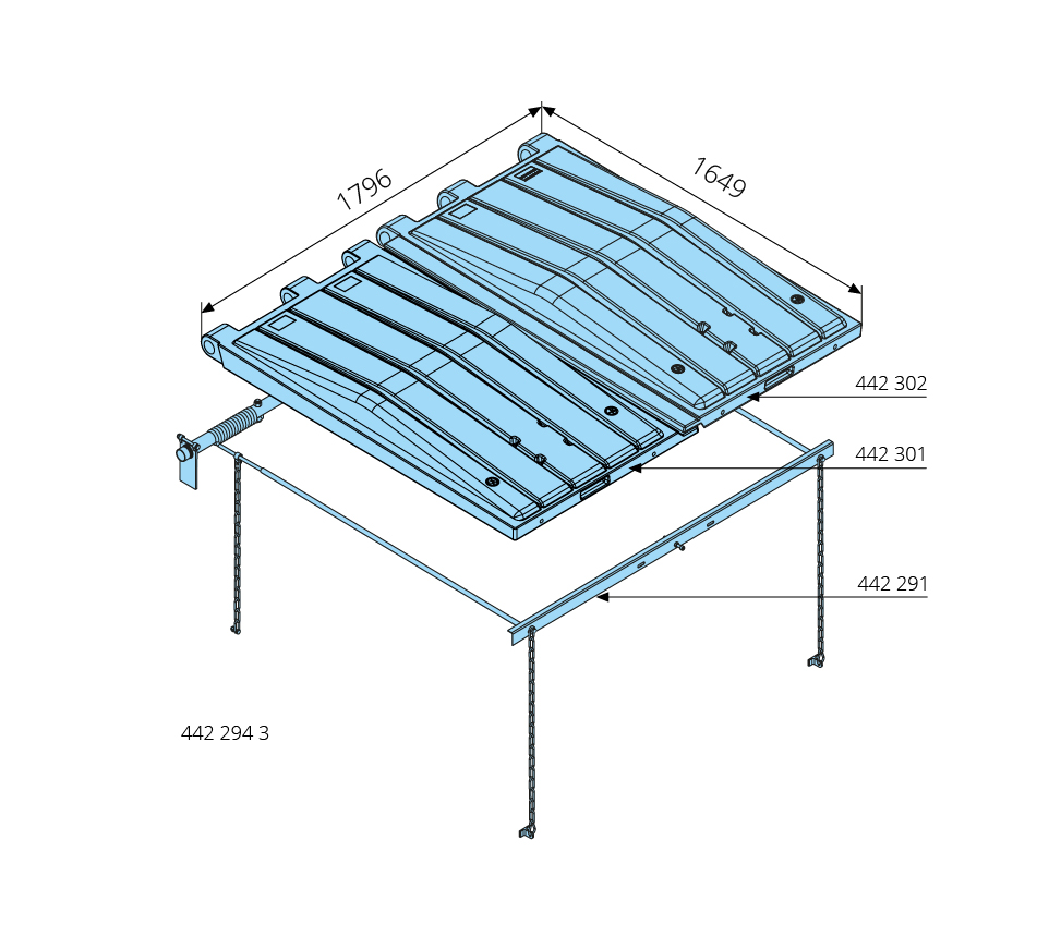 Spring relief system with spiral springs completeSpring relief system (452 291) & REWALD lids AM3463SM /-MM (442 301 /-302), pre-assembled