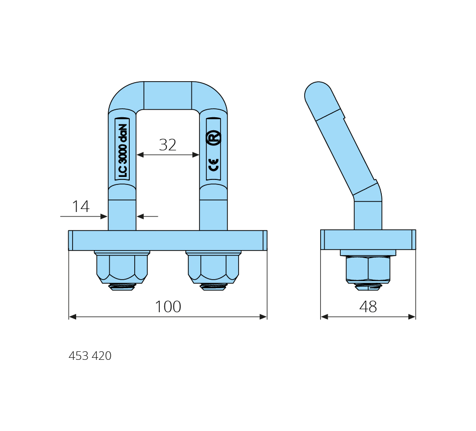 Anneau d'arrimage 100x100x50mm, LC 3000daN (3,0t), forgé, galvanisé