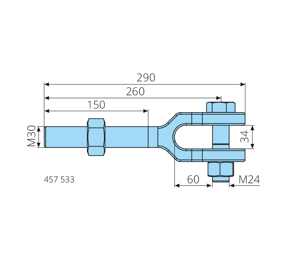 M30x290mm, left-hand thread, galvanized, with bolt & nuts